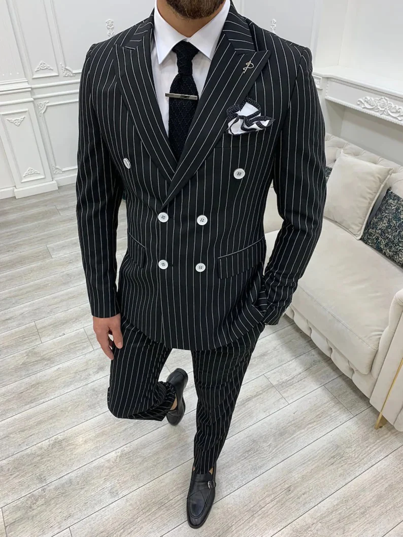 When it comes to timeless elegance, nothing defines sophistication quite like a perfectly tailored men suit. Our Black Striped Double Breasted Men Suit is designed for the modern gentleman who values class, confidence, and commanding presence. Whether you’re attending a wedding, stepping into an important business meeting, or dressing for an upscale evening event, this men suit ensures you stand out with authority and style.