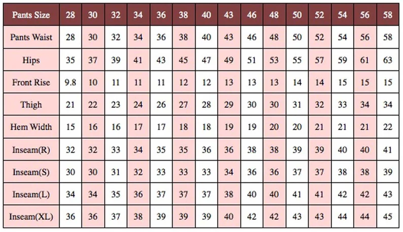• Trouser length