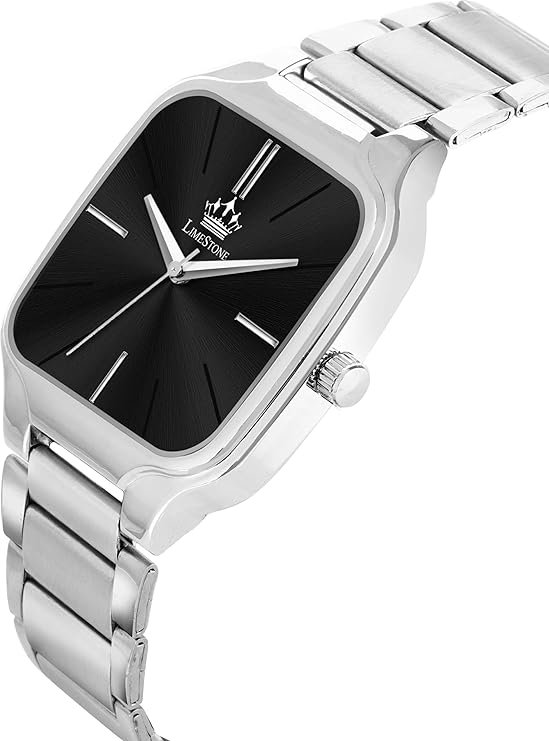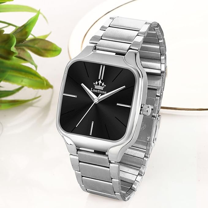 - Modern Rectangular Design: Unique black dial with sleek stainless steel case for a contemporary look